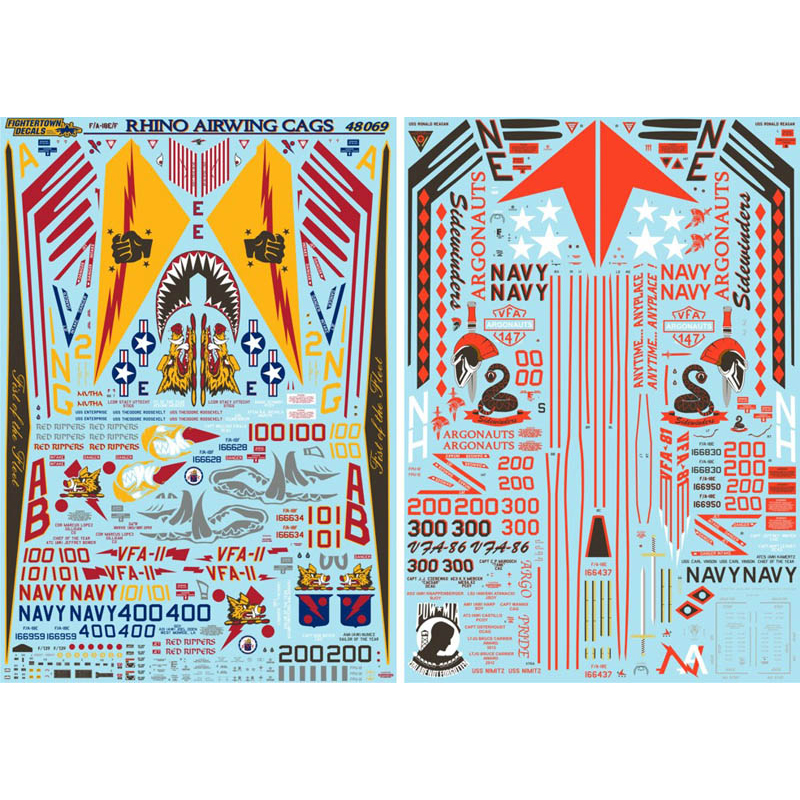 1/48スケールのF/A-18E/Fスーパーホーネットのキットに対応したデカールセットです。