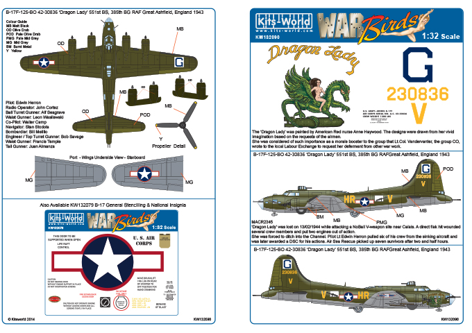 このセットはアメリカ陸軍航空軍第385爆撃飛行群第551爆撃飛行隊所属の'Dragon Lady' 号のマーキングを収録しました。