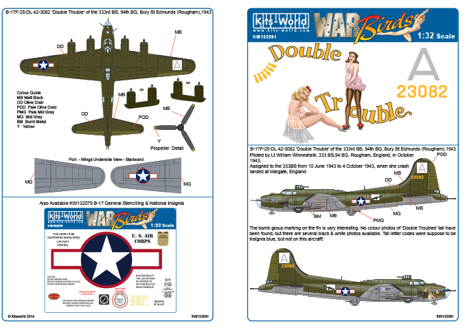 このセットはアメリカ陸軍航空軍第94爆撃飛行群第333爆撃飛行隊所属の'Double Trouble' 号のマーキングを収録しています。