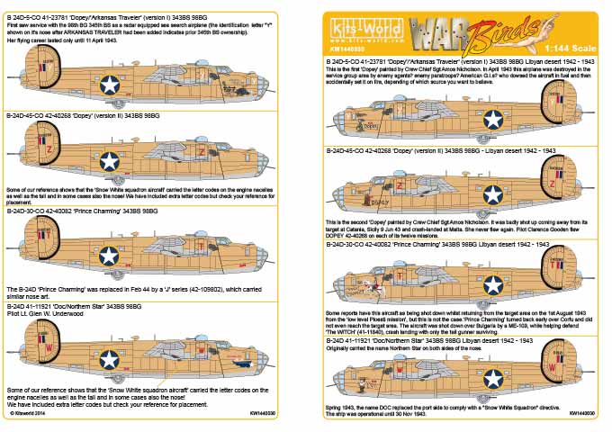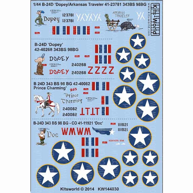 KITSWORLD 1/144 B-24/=Dopey=/=Arkansas Traveller= version I & II /=Prince Charming= /=Doc=