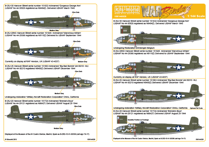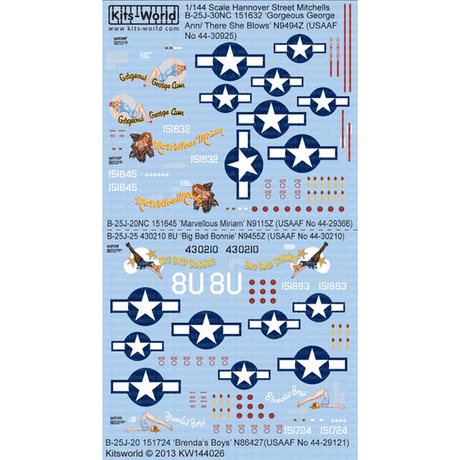 KITSWORLD 1/144 B-25J Mitchell =Gorgeous George Ann/There She Blows = / B-25J Mitchell =Marvellous Miriam= / B-25J Mitchell =Big Bad Bonnie= / B-25J Mitchell =Brendafs Boys=