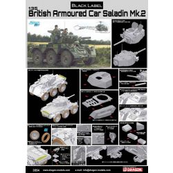 第二次大戦後にイギリスが開発、装備した装輪式装甲車、サラディンを1/35スケールで再現したプラスチックモデル組み立てキットです。