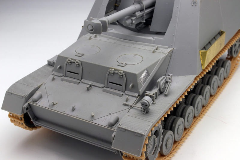 車体上部、戦闘室の見どころはもちろん、105mm榴弾砲本体のメカニカルな再現に加えて、ガンシールドと装甲板は新しく開発。
