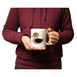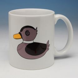 ガールズ&パンツァーに登場する大洗女子学園のカモさんチームのマークをプリントしたマグカップ。