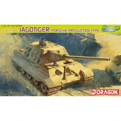 第二次世界大戦でドイツ軍が配備した重駆逐戦車、ヤークトティーガーのポルシェタイプを1/35スケールで再現したプラスチックモデル組み立てキットです。実車について