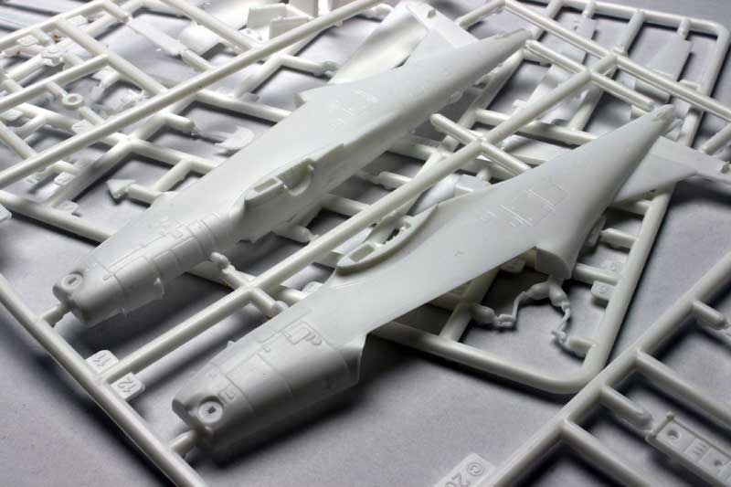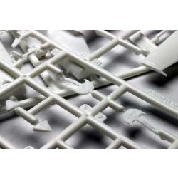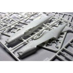 タンデム複座のコクピットもシートや操縦桿、計器板やサイドコンソールなど、リアルに再現。大きなキャノピーから見えるコクピットは実感もたっぷりです。脚は出した駐機状態、収納した飛行状態のどちらかを選んで組み立て可能。パーツ数は52点。大型のデカール、カラーの組み立て説明書とカラーリング、マーキングの説明イラストもセットされています。