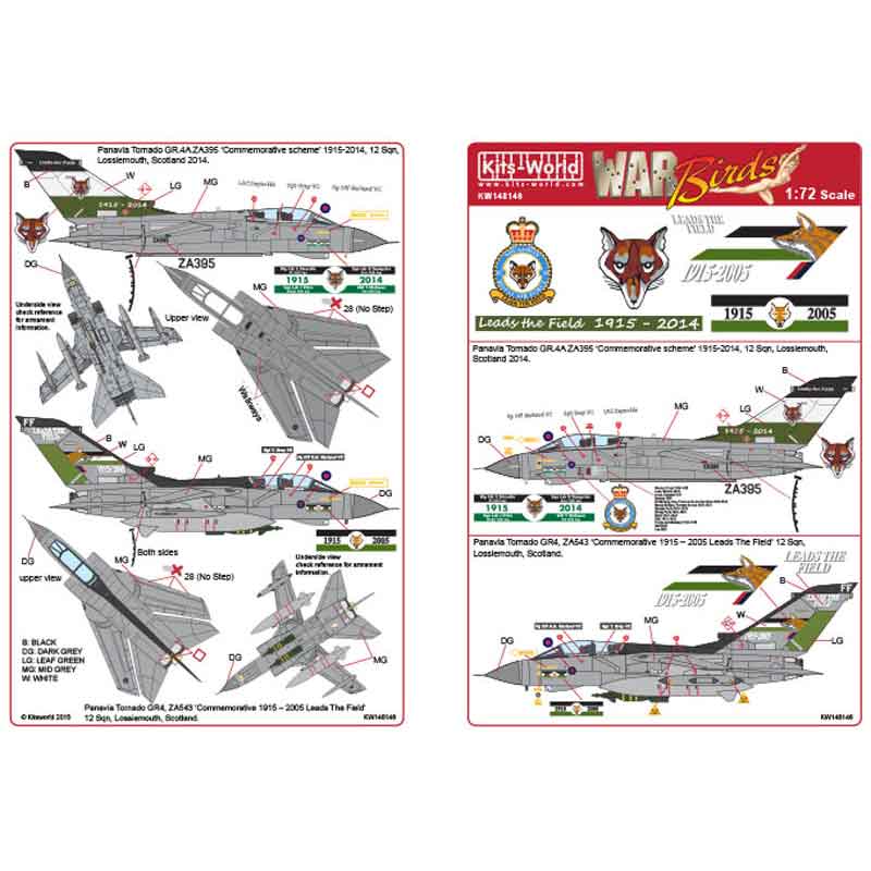 このセットは1915年に誕生したイギリス空軍の第12飛行隊を記念して現在の運用機、パナビア・トーネードの機体に記念塗装を施した特別マーキング、2種を収録しています。