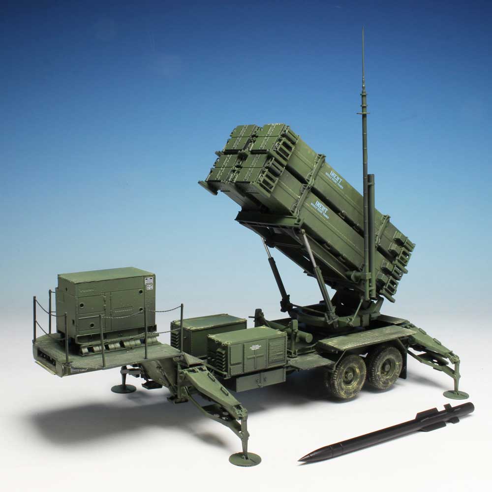 傑作地対空ミサイルシステムとして世界で運用されているパトリオットPAC-3を1/35スケールで再現したプラスチックモデル組み立てキットです。