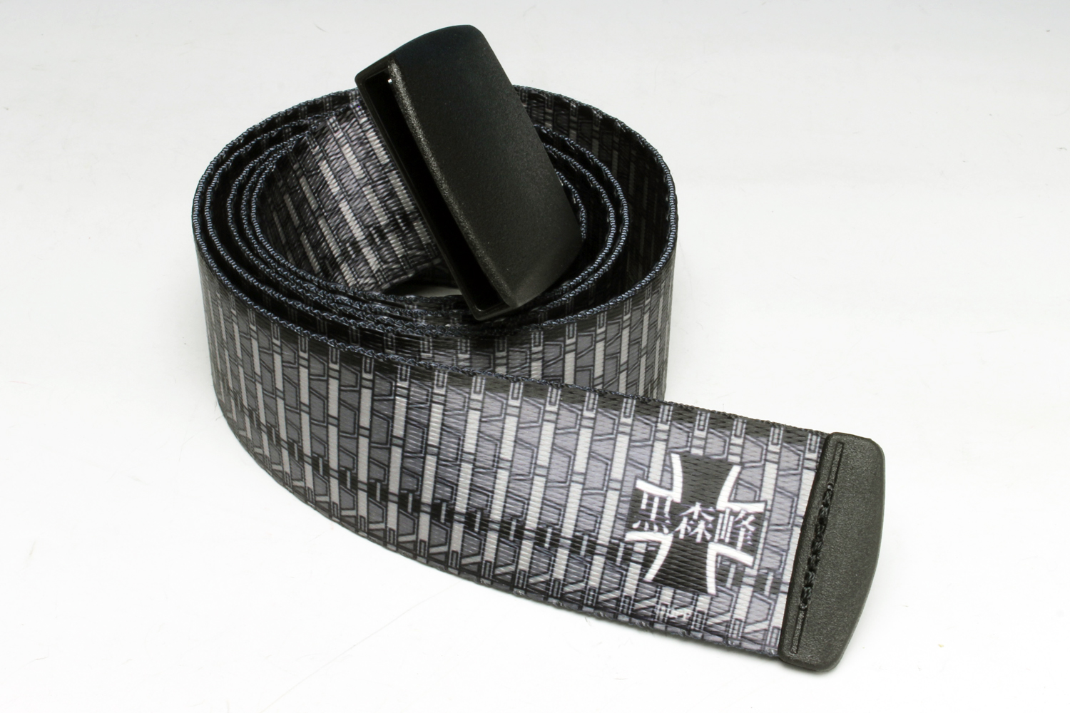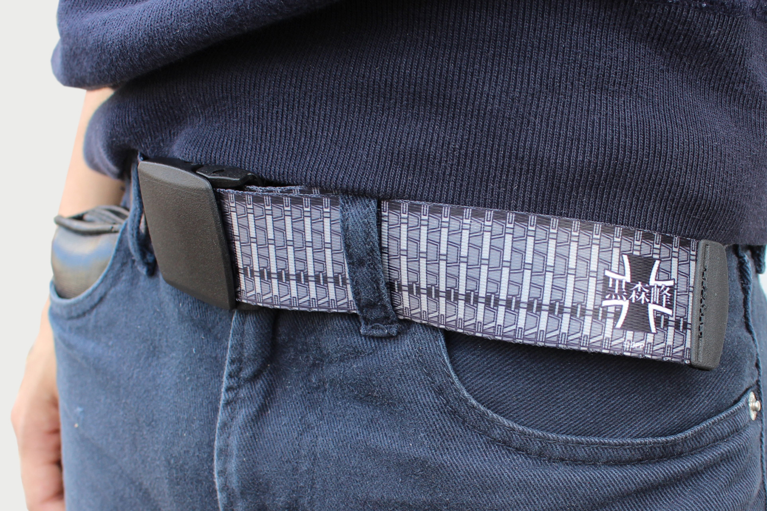 ベルトの端にはワンポイントで黒森峰女学園の校章をあしらったシンプルなデザインで、普段使いにも最適!両面に履帯のデザインをプリントしてあるので、バックルを外して表裏を変えれば、端までシンプルなデザインでお楽しみいただけます。