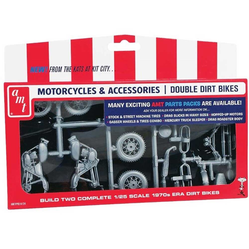 AMTの1/25カーモデル用アクセサリーシリーズの中のキットです。このキットでは1970年代に人気を集めたダートバイクを1/25スケールで再現しています。