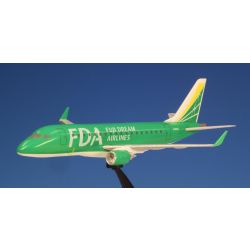 モデルはFDA、フジドリームエアラインズが運用するエンブラエル170/175を1/300スケールで再現しています。全長は約10cmできれいな機体形状を実感たっぷりにモデル化。各パーツは塗装済みで、パーツ数も少なく、どなたでも簡単に完成させていただけます。このモデルはFDAが導入した4号機のグリーンの機体色で仕上げられています。明るい・グリーンが気持ちよく映える仕上がりです。エンジンポッドは機体と同じグリーン、主翼はグレイで前縁部分をシルバーで塗り分けています。機体色とのコントラストもきれいな機体です。また、胴体に描かれたFDAのロゴなどはもちろん再現済み。飛行状態でディスプレイできるスタンドもセットされています。そのまま机上にディスプレイしたり、また、機体ごとに異なるカラーリングのFDAのエンブラエルの各色モデルも揃っていますから、並べてみたり、FDAを利用する機会があれば搭乗した機体のカラーのモデルを記念に飾っておくのも良いでしょう。