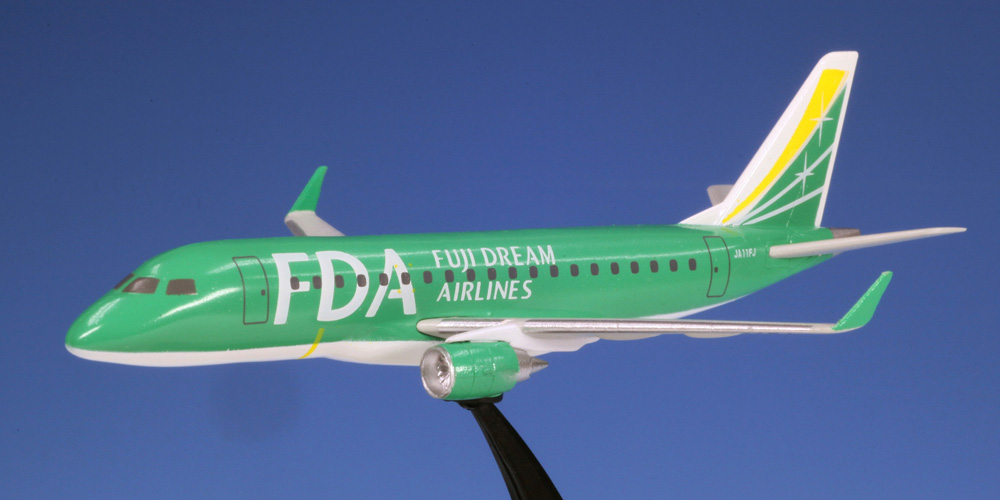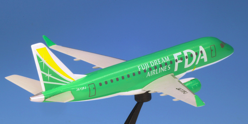 富士山静岡空港と名古屋の小牧空港を拠点に日本各地を結ぶエアライン、フジドリームエアラインズが運用するグリーンの11号機を1/300スケールで再現した塗装済み、半完成飛行機模型組み立てキットです。