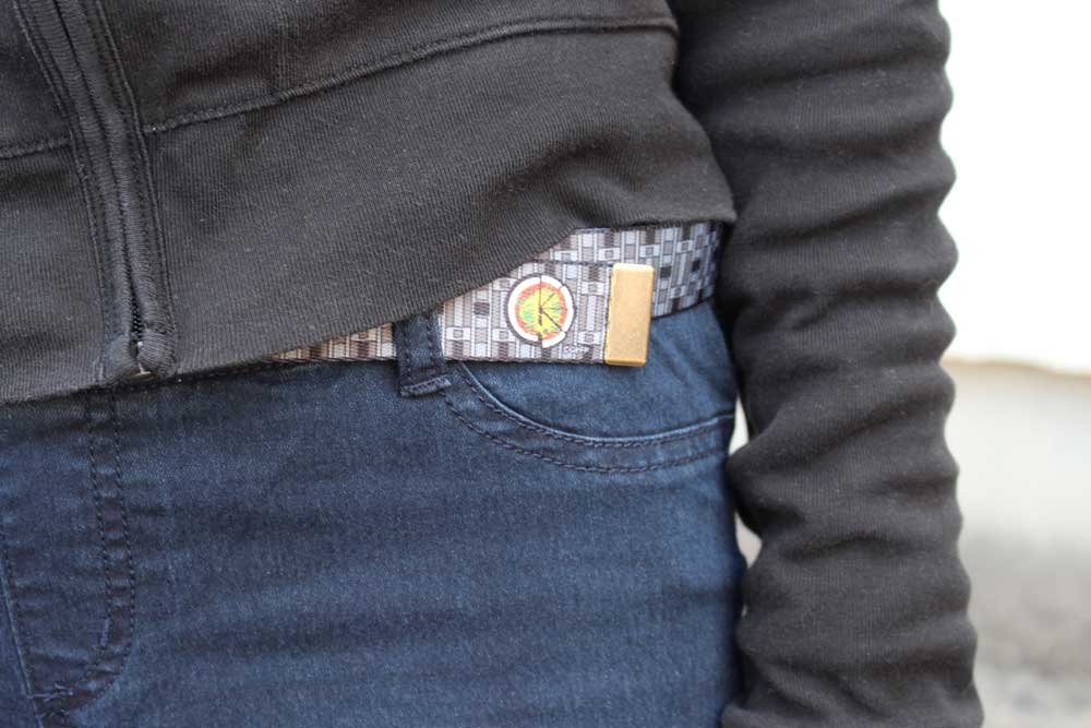 ベルトはナイロン製でフリーサイズなので、どなたでもご使用いただけます。IV号戦車バージョンよりも細めの25mm幅で、カルロ・ベローチェの履帯を再現。バックルは雰囲気ある金属製のアンティークゴールド。