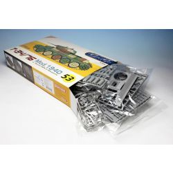 また、履帯は組み立て式のマジックトラックを採用しています。車体上部は被弾経始に優れた形状を正確にモデル化。車体前面に装備された2個のヘッドライトやフェンダーに乗せられたスペアの履帯、工具箱やスコップなども再現され実感を高めます。マーキングは砲塔に描かれたスローガンなどをデカールで用意。ボーナスパーツも加わって、仕上げが楽しくなるキットです。
