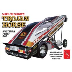 モデルは人気ドラッグレーサーのラリー・フラートンのトロージャン・ホース1975年フォード・マスタングファニーカーを再現。スケールは1/25。70年代に発売されたモデルを再リリースしたキットはボディのディテールをはじめ、フロントタイヤのサイズ、形状やデカールの色調など、最新の技術と考証で見直してモデル化。