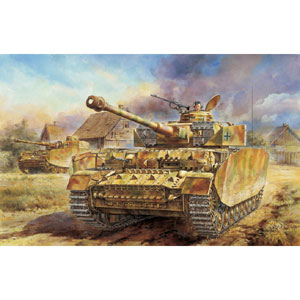 第二次世界大戦でドイツの軍馬とまで呼ばれて兵士の高い信頼を集めたドイツ軍戦車がIV号戦車です。1936年に最初のタイプが制式化され、以降改良のアップデートが続けられ、第二次大戦を通してドイツ軍主力戦車として活躍。中でも最終生産型に近いタイプがH型で、1943年から44年にかけて生産され、その数はIV号戦車の各タイプの中でももっとも多くなっています。主砲には48口径7.5cmKwK40を搭載、また、生産時から追加装甲板、シュルツェンを砲塔、と車体側面に装備していました。主力となっていたパンサー戦車とともに終戦までドイツ防衛に奮戦したのです。