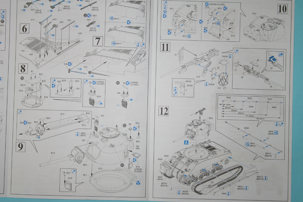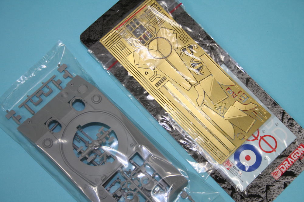 モデルはイギリス軍のシャーマンIIIの中でも直視バイザータイプの初期生産型をモデル化しています。車体上面パーツはこのキットで新たに製作され、車体前面装甲板をはじめ各部の溶接跡なども繊細に表現され、その形状の再現とともにリアリティあふれる仕上がりが楽しめます。加えて、車体後部エンジンデッキパネルとグリルはそれぞれ別パーツでセットされています。また、フェンダー部品はエッチングパーツで再現。金属の質感が楽しめるほか、凹みなどのダメージ再現に挑戦してみるのも良いでしょう。砲塔は鋳造肌の再現もリアル。重量感、厚みを感じさせる仕上がりで、コマンダーズハッチは開閉を選択して組み立てていただけます。また、砲塔後部に装備される工具箱は開閉選択。情景設定の幅も広がります。
