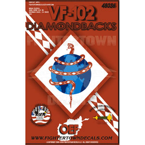 VF-102 ダイアモンドバックスのアフガニスタン攻撃作戦時のマーキングを再現したデカール。この航海を最後に、ダイアモンドバックスはF-14BからF/A-18Fへと機種転換しました。