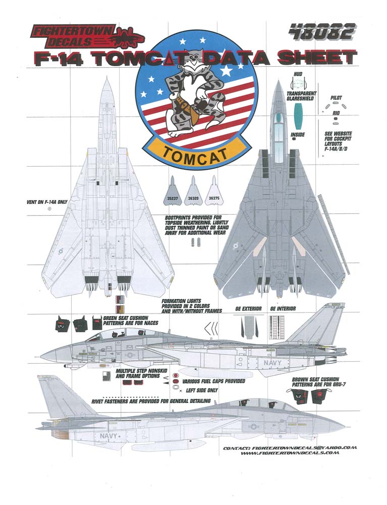 1/48スケールのF-14A/B/Dトムキャットのモデルに対応したデカールのセットです。