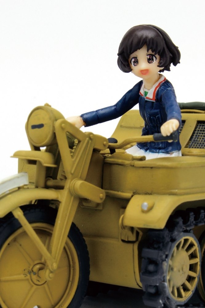 みほ、優花里のフィギュアは、このケッテンクラートに合わせて飾る為の完全新規造形。ハンドルを握る優花里と後部シートに座るみほを動きのあるいきいきした姿で立体化しています。