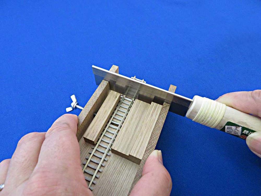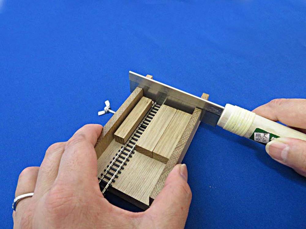 鉄道模型レール切断切断に特化した木製カッティングガイドです。