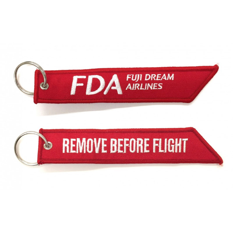 整備中の航空機に取り付ける確認用安全ピンのリボンを模した、航空ファン必携のキーホルダー。
