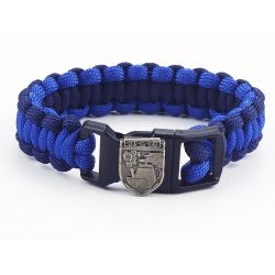 ブレスレット部分は実際にパラシュートのラインとして使用されているパラコードを編み込み各校のイメージカラーを再現しました。バックル部分には各校の校章をキャストした金属パーツが付いています。