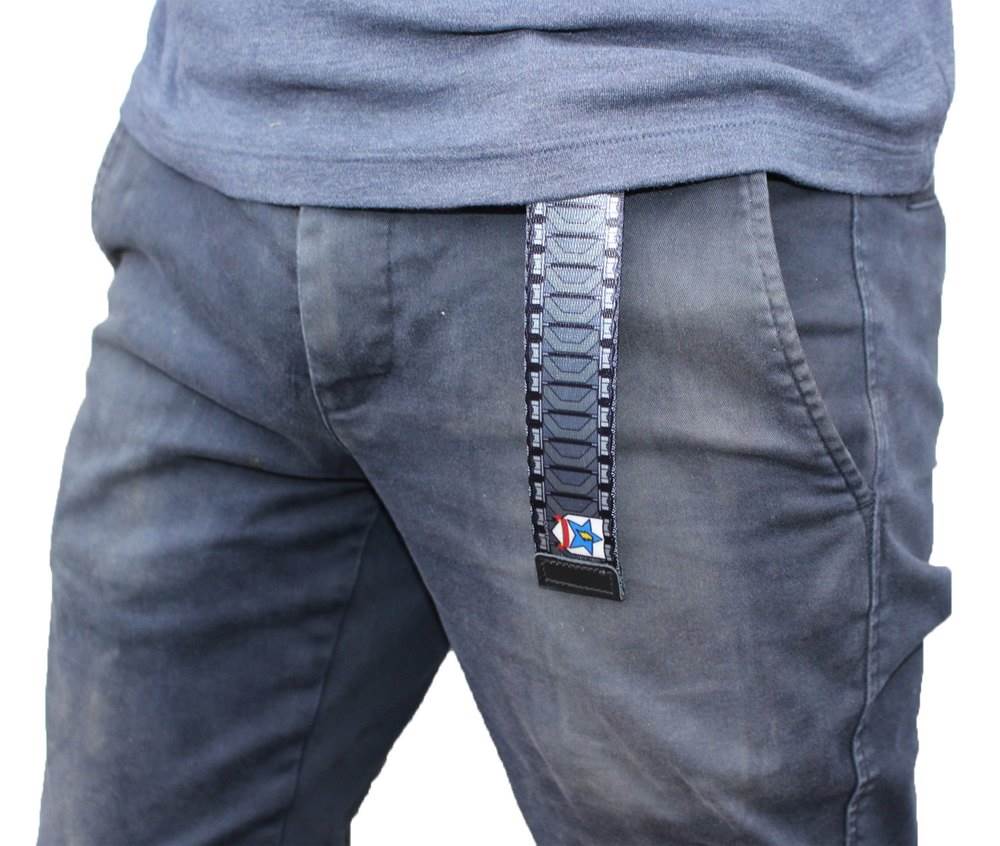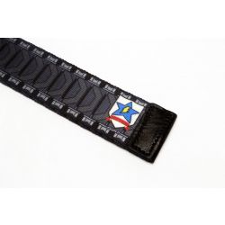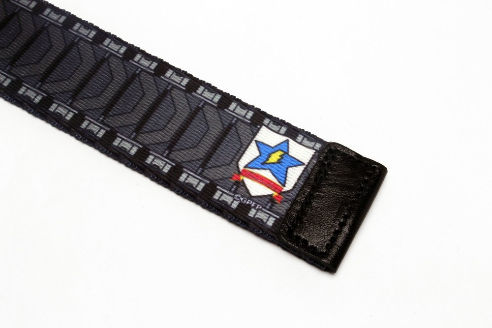 片面のベルトの端にはワンポイントでサンダース大学付属高校の校章をあしらったシンプルなデザインで、普段使いにも最適!両面に履帯のデザインをプリントしてあるので、バックルを外して表裏を変えれば、端までシンプルなデザインでお楽しみいただけます。