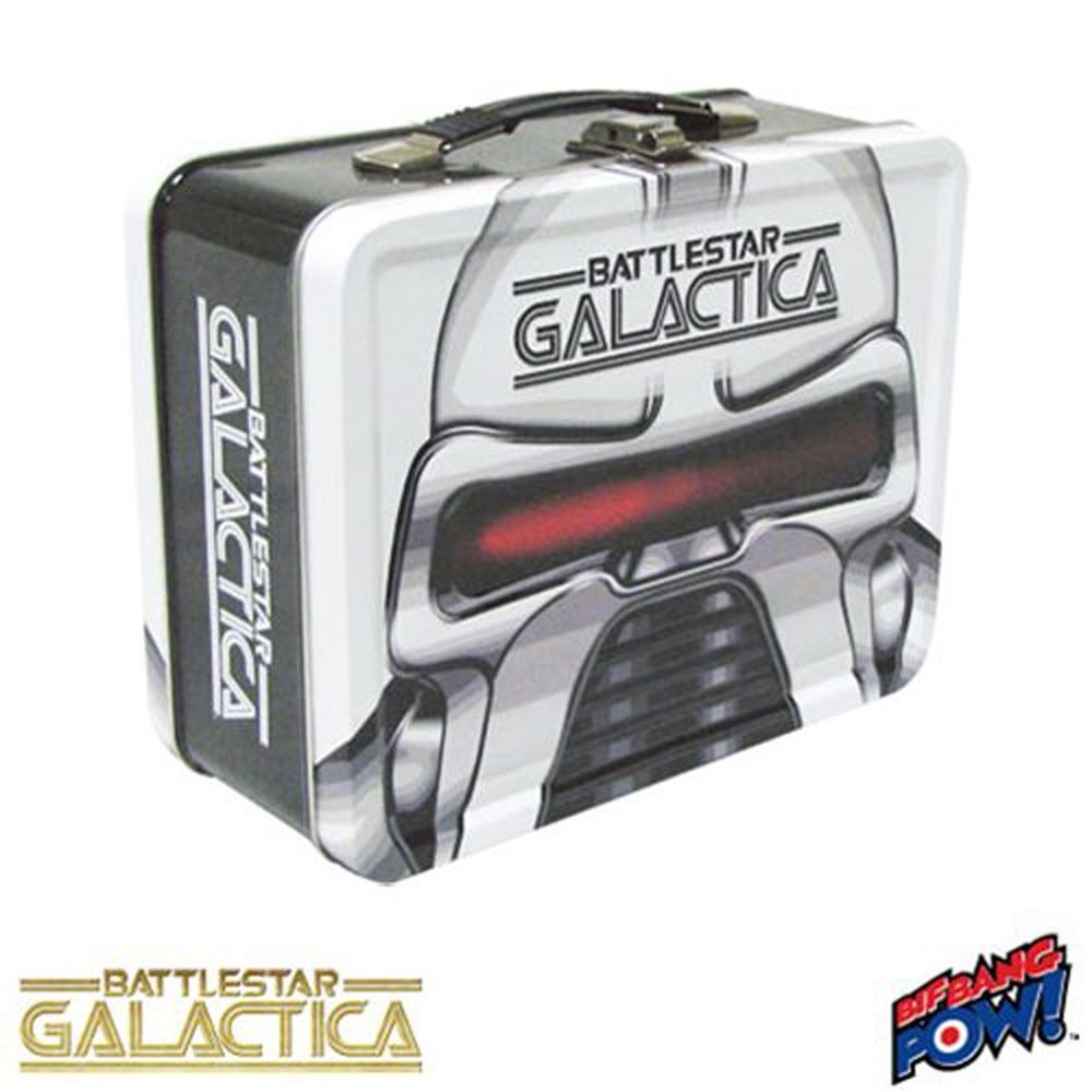 このティントート(缶バッグ)は蓋にサイロン兵の顔を大きく描いたインパクト十分なデザインの金属製ケースです。マチの部分はブラックにギャラクティカのロゴをレイアウトしています。サイズは幅約22cm x 高さ約17cm x 厚さ約10cm。取っ手や留め具も使い勝手に優れています。