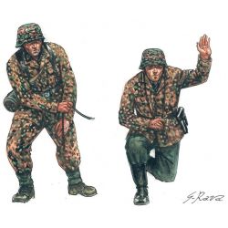 モデルは第二次大戦中に開発、配備されたドイツの代表的対戦車砲、7.5cm Pak40をそのクルーとともに1/72スケールで再現したプラスチックモデル組み立てキットです。セットは7.5cm 対戦車砲Pak40が2門とそれを操作する兵士12体をモデル化しています。砲1門は9つのパーツで構成され、組み立ては手軽。それを操作する兵士のフィギュアは6ポーズ、各2体の計12体をセット。各兵士はロングコートやフード付きパーカー、迷彩スモックを着用した姿でモデル化されています。砲弾を運ぶポーズや砲のハンドル操作をするポーズ、双眼鏡を手に指示を出すポーズなど、各兵士のリアルなポージングも見逃せません。射撃を控えた臨場感も伝わります。兵士の身長は約24mmでユニフォームのしわなども含めてディテールもリアルに表現されています。