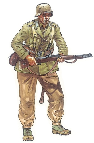 さらに、このセットではドイツ軍兵士のフィギュアもセット。バイクにまたがる兵士やサイドカーに乗って機銃を構える兵士のほか、立ち姿勢の兵士も用意されています。