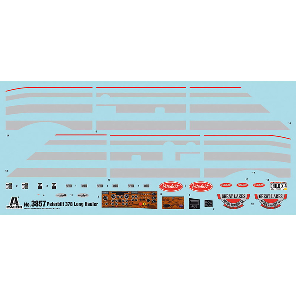 1/24スケールでアメリカの代表的なトラックメーカー、ピータービルト社のモデル378を再現したプラスチックモデル組み立てキットです。