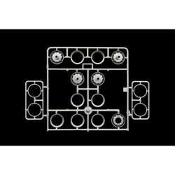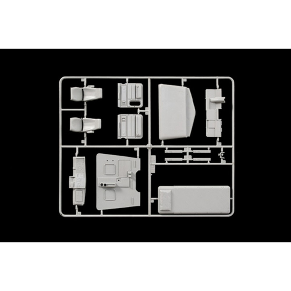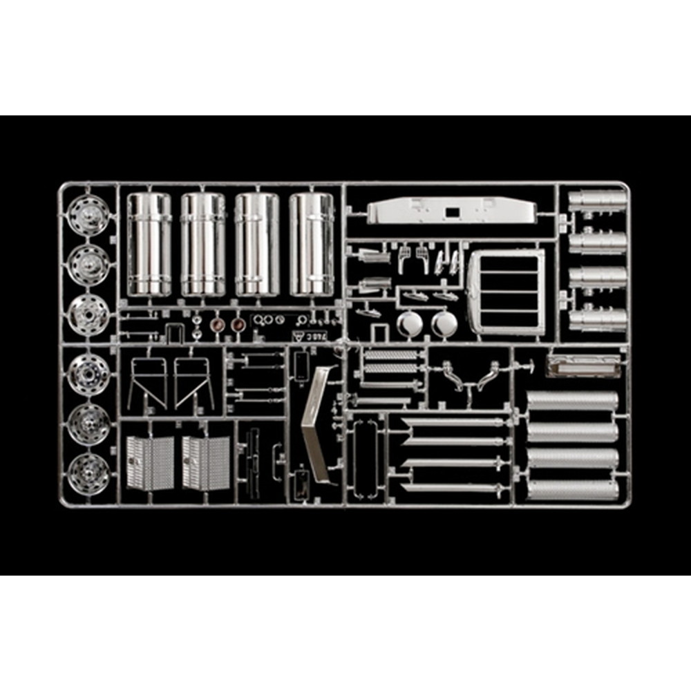 アメリカン大型トラックの代表的車種の一つ、ピータービルトの378を1/24スケールで再現したプラスチックモデル組み立てキットです。このモデルでは中でも最大のスリーパーキャブを装備したタイプをモデル化。エアロデザインが施されたボンネットにマッシブで巨大なスリーパーキャブを装備したスタイルが迫力たっぷり。仕上がり全長は32.2cmにも達します。パーツ数約300点でシャシーフレームからエンジン、キャビンに至るまで、詳細に再現。作りごたえあるビッグモデルです。実車のメカニズムを正確に表現するメインフレームに、後輪2軸のアクスル、サスペンションなどまでモデル化。エンジンも補器類まで再現され、パワーも伝わってきます。タイヤは中空でリアリティも十分。燃料タンクや排気管、ホイールなど、メッキパーツも豊富です。スリーパーキャブ付きのキャビンもインテリアはシートやベッドなどに至るまでモデル化され、居住性の良さも伝わる仕上がりが楽しみ。フェンダーとは独立したフロントヘッドライトアッセンブリーのデザインもしかり再現され、特徴ある仕上がりが見逃せません。