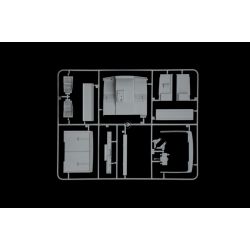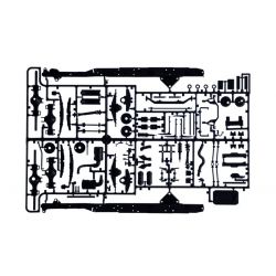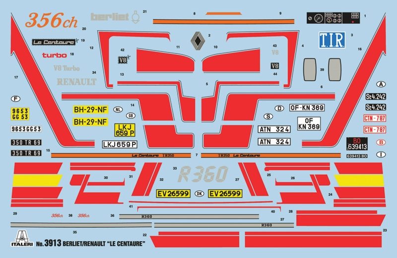 モデルは1/24スケールでフランスのメーカー、ルノーがラインアップするトラック、R360ケンタウロスを再現したプラスチックモデル組み立てキットです。パーツ点数約290点で、シャシーまで細部までリアルに再現。仕上がりの全長は26.6cmで、ベルリエR356ch/ルノーR360ケンタウロスの形をモデル化しています。シャシーはラダーフレームの形状を実車そのままに再現。前後サスペンションやリア2軸の駆動系も詳細にモデル化しています。そこに搭載されるエンジンはV型8気筒。ターボチャージャーや各種補器類まで詳細に再現され、メカニカルな仕上がりを演出します。キャビンはキャブオーバータイプで実車同様に完成後も前方に倒すことができますから、エンジンのディテールアップに腕を振るってみるのもよいでしょう。もちろん、ハイルーフ化され、居住性がたかったケンタウロスならではのキャビンは運転席やダッシュボード、ドア内張、さらに、スリーピングスペースまでその内装をリアルにモデル化。二人のデザイナーの思いも伝わってきます。マーキングにはキャビンを彩るストライプに、ヨーロッパ各国のライセンスプレートなども収録しています。