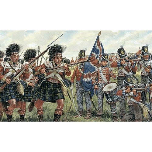1/72スケールで1800年代初期のナポレオン戦争で活躍したイギリスとスコットランド兵を再現したプラスチックモデルフィギュアの組み立てキットです。