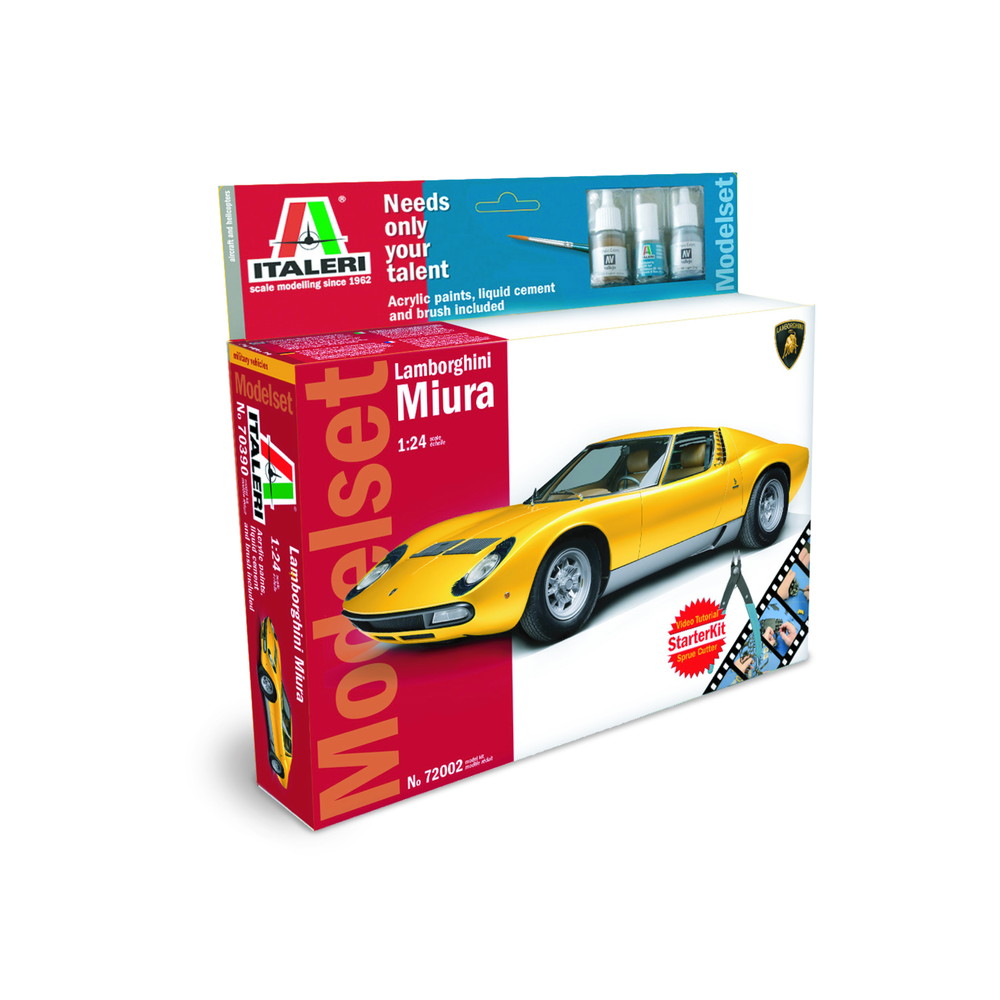 モデルは1/24スケールでスーパーカーの始祖、ランボルギーニ・ミウラを再現したプラスチックモデル組み立てキットです。