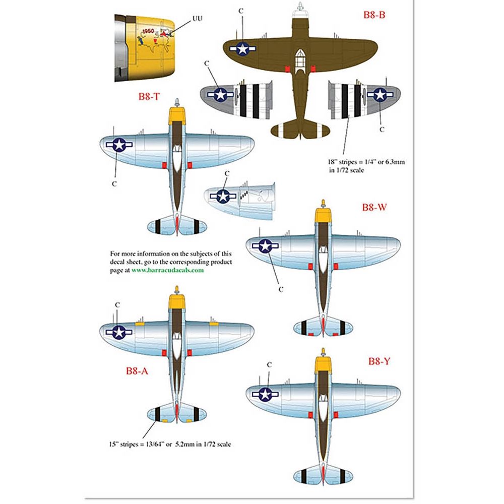 1/72スケールのリパブリックP-47サンダーボルトのプラモデルキットに対応するデカールのセットです。