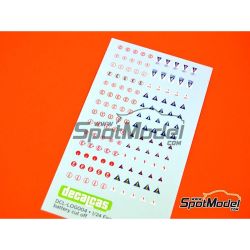 このデカールセットは1/24スケールの車に適応したレーシングカーなどにみられる消火装置マークやキルスイッチマークをセットしています。