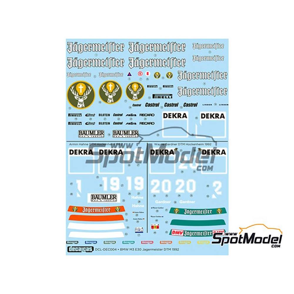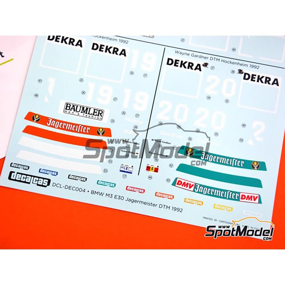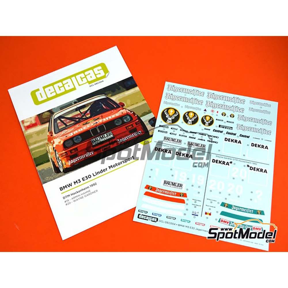 このデカールセットはヨーロッパのツーリングカーレースで活躍したBMW M3E30のリンダーモータースポーツチームが1992年のDTM、ホッケンハイムでのレースで走らせたマシンを再現できるマーキングが入っています。