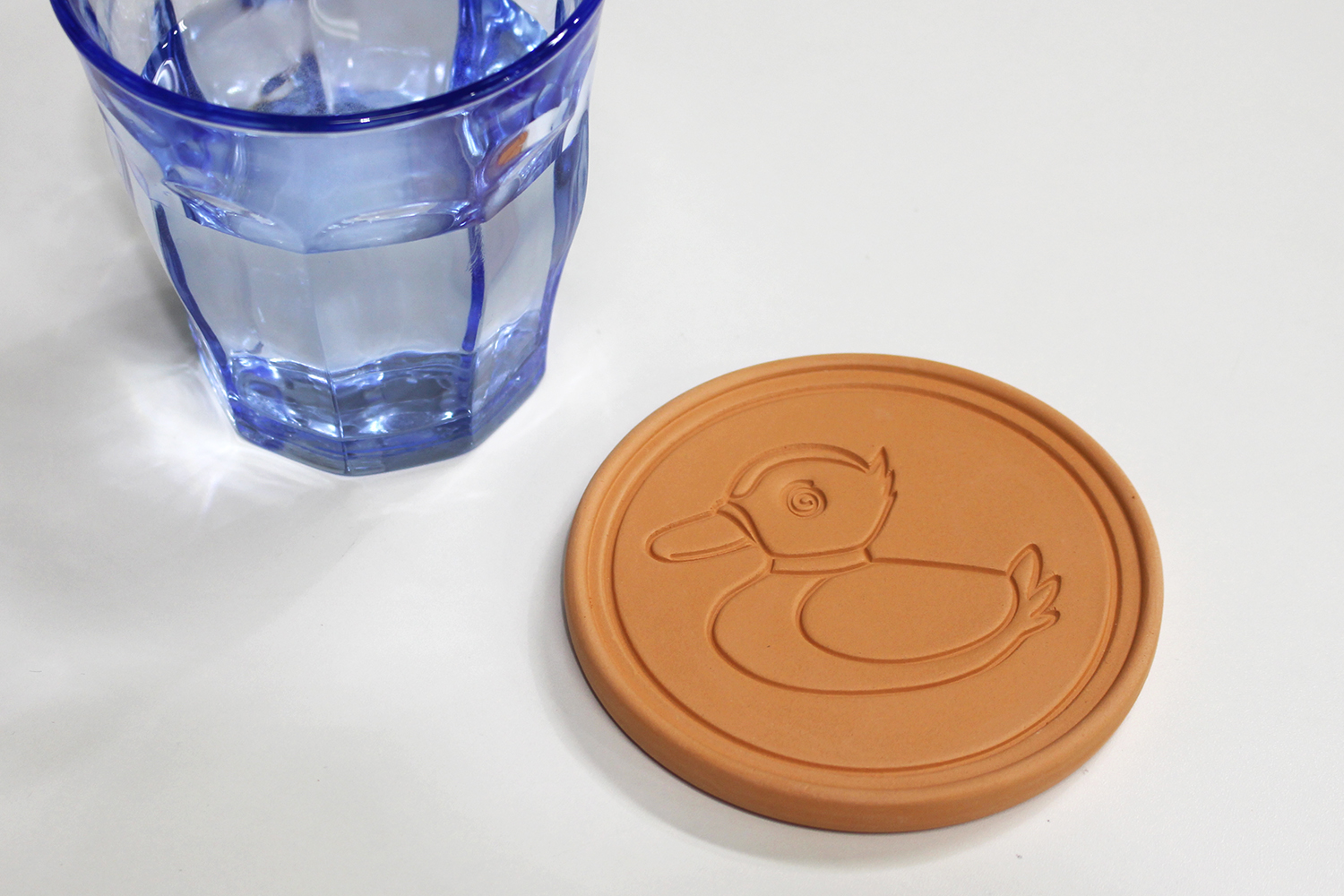 ■カモさんチームマークがデザインされた瓦茶托(瓦コースター)