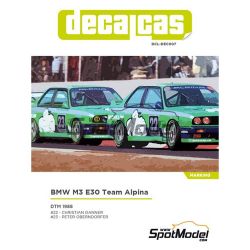 このセットはBEEMAXの1/24スケールBMW M3E30のモデルに対応したデカールのセットで、ドイツで行われている人気ツーリングカーレース、DTMの1988年シーズンに活躍したチーム・アルピナのマシンのマーキングを収録しています。