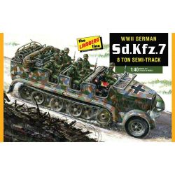 エンジンはマイバッハのHL62、直列6気筒ガソリンエンジンを搭載。8トンの牽引能力を持ったタイプで1934年にSd.Kfz.7として制式化され、1938年まで生産されました。後部座席には最大12名の兵員を乗せることができ、88mm砲やs.FH18榴弾砲などの大型火砲の牽引車両として、それを操作する砲兵チームとともに各戦線で活躍しました。