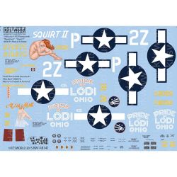 このセットではヨーロッパ戦線で活躍した部隊に所属する機体から2つの機体のマーキングをセレクトして収録しています。第二次大戦末期、1944年からイギリスに進出。ノルマンディ上陸作戦に先立って活動した第405戦闘群の「スピリットII」と太平洋戦線で活躍した第348戦闘群の「ミス マット」の2機を収録。女性のイラストが描かれたノーズアートが見逃せません。