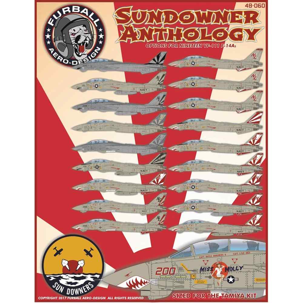 運用していたF-14トムキャットのマーキングから19機のマーキングを選んで収録しています。1978年から1994年にかけてのハイビジとロービジのマーキングをセット。人気のマーキングは見逃せません。このセットには別売のステンシルデカールシート(48-059)もセットされ、2機分が製作可能です。収録されているのは19機のマーキングです。その中から選んであなたの手元のF-14トムキャットを人気のVF-111サンダウナーズ仕様で仕上げてください。
