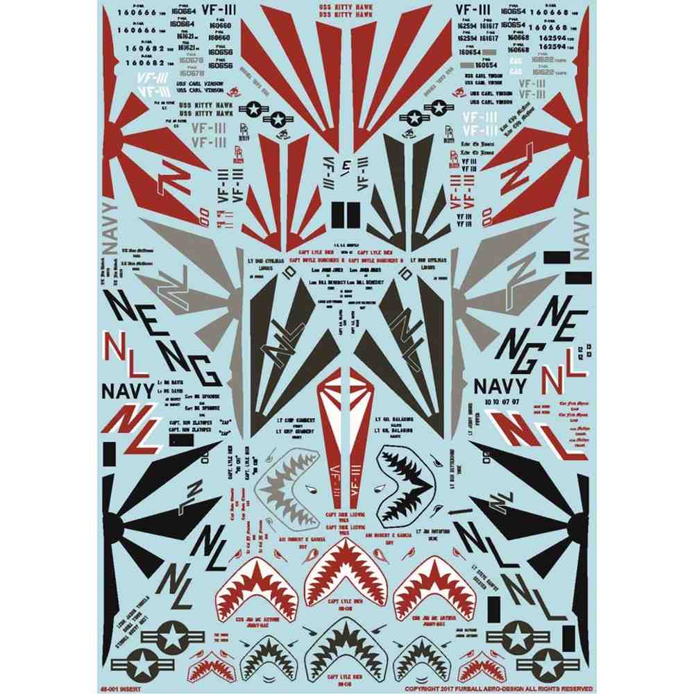 1/48スケールのF-14トムキャットのモデルに対応したデカールのセットです。