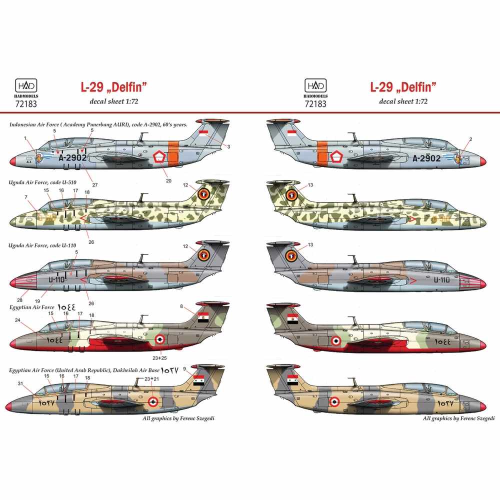 ワルシャワ条約機構加盟国共通練習機として使用されたL-29デルフィーンのインドネシア空軍/ウガンダ空軍/エジプト空軍用マーキングを収録。