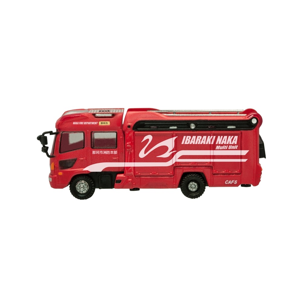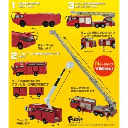 消防車両1の2車種に加えて、はしご付き消防車をラインナップしました。バリエーションも9種類、よりコレクションやジオラマ製作を楽しめるアイテムとなりました。