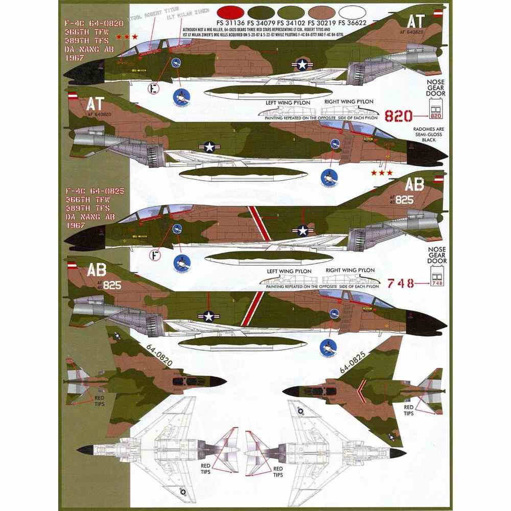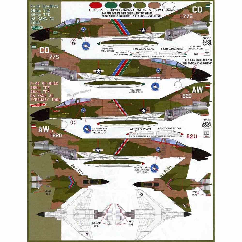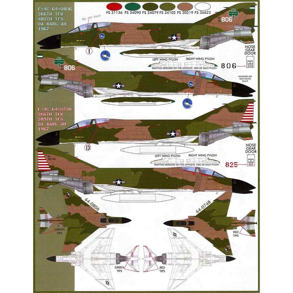 このセットでは下記の1967-1971にかけて、ベトナム戦争に参加した第35TFWと第366TFWのファントム11機のマーキングを収録しています。