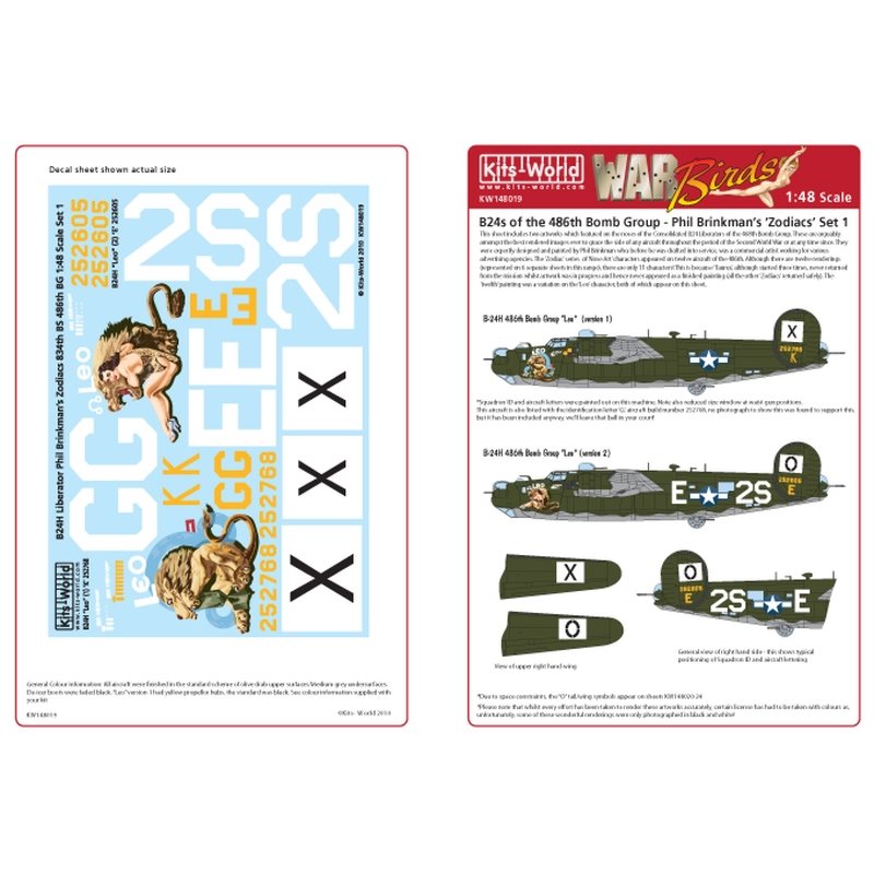 この第834爆撃戦隊は所属機のノーズアートに12星座の動物を描いたことから「ゾディアック・スコードロン」と呼ばれていました。その中から、ライオン、獅子を描いたマーキング2種を収録しています。