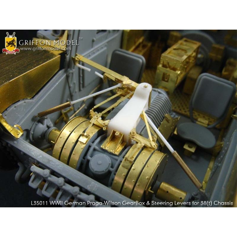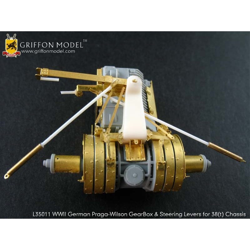 ドラゴンの1/35ドイツ38(t)戦車G型インテリア付き(キット№6290)のキットに対応したギアボックスパーツのディテールアップパーツのセットです。